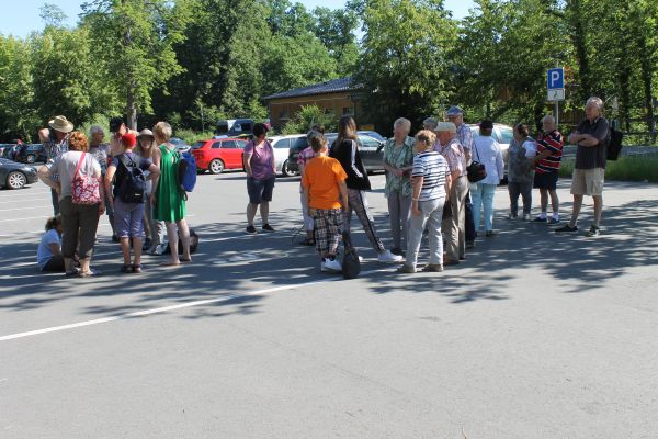 ![]() | Die Fahrteilnehmer vor dem Eingang des Wisentgeheges. |