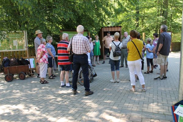 Der Ortsrat hatte alle Einwohner für Sonntag den 30. Juni um 8:30 Uhr zu einer Busfahrt in das Wisentgehege bei Springe eingeladen. Bei herrlichem Sonnenschein startete der Reisebus der Fa. Pülm ab der Bushaltestelle gegen 8:30 Uhr. Leider hatten sich nur 26 Personen, davon 4 Kinder, hierzu angemeldet. In dem Wiesentgehege angekommen, nahmen alle an einem 1,5 stündigem Rundgang durch das Gehege teil. Hierbei wurde alles Wissenswerte über die Geschichte des Tierparks und der hier lebenden Tiere erzählt. Bei Temperaturen von bis zu 38° C war es sehr schön dass der 100 Ha große Wildpark fast ausschließlich bewaldet ist. So konnten wir sehr schön im Schatten die ausschließlich heimischen, zum Teil auch ausgestorbenen Tiere, beobachten. Alle Fahrtteilnehmer wurden vorher mit einem Rundschreiben auf das zu erwartende Wetter und der hierfür entsprechenden Kleidung und auch an die Mitnahme von Getränken erinnert. Die Mitglieder des Ortsrates hatten zusätzlich einen Handwagen mitgebracht, auf dem sich gekühlte Getränke und Fingerfood befanden. Auch die Rucksäcke und Taschen konnten darauf transportiert werden. Nach der sehr interessanten Führung, konnte sich jeder die Zeit bis 14 Uhr selbst gestalten. Hier haben verschiedene in dem Cafe Wild etwas verzehrt, oder haben bei einem gemeinsamen Picknick an einem schattigen Plätzchen die mitgebrachten Dinge verzehrt. Bei den hohen Temperaturen hatte kaum jemand Lust zu einer weiteren Erkundung des Geheges. Für 14 Uhr waren dann im Garten des Cafe Wild Plätze reserviert. Hier bekam jeder 2 Stck. Torte serviert und konnte sich am Kaffee bedienen. Für 15 Uhr war der Bus für die Heimfahrt bestellt. Auch bei den extrem hohen Temperaturen war es eine sehr schöne – und erlebnisreiche Fahrt, die mehr Teilnehmer verdient hätte.