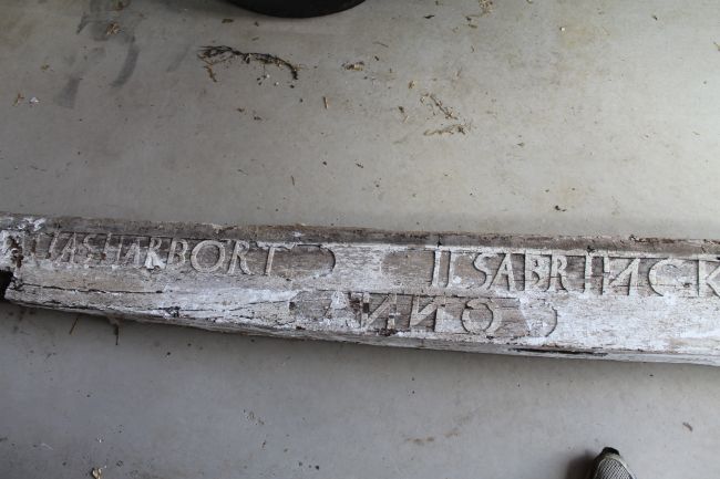 Es war ein beschrifteter Balken dabei, bei dem die Jahreszahl 1689 und der damalige Besitzer Harbort und weitere Namen zu lesen sind (siehe Bilder).
