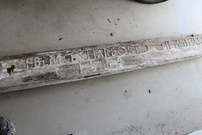 Der Balken soll nun restauriert und an einem anderen sichtbarem Ort wieder eingebaut werden.