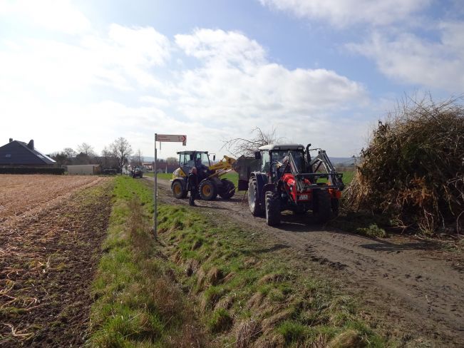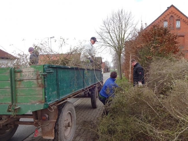 Wie es schon seit vielen Jahren Brauchtum ist, wurde auch in diesem Jahr am Ostersamstag wieder ein Osterfeuer zusammengefahren und am Abend abgebrannt. Das Osterfeuer wird von der Freiwilligen Feuerwehr schon seit vielen Jahren veranstaltet. Hierzu gibt es bereits im Vorfeld ein Rundschreiben im Ort mit der Bitte  wenn Baum – und Strauchschnitt  abgeholt werden soll diesen bei der Feuerwehr anzumelden.Treffen ist am Ostersamstag  um 8 Uhr am Feuerwehrhaus, von hier wird dann das ganze koordiniert. So fahren mehrere Trecker mit Anhängern und immer ein paar Helfern durch den Ort um gegen eine Spende das angemeldete Strauchzeug aufzuladen und an seinen Bestimmungsort zu fahren.  Der Baumschnitt kann aber auch bis Mittag selbst angeliefert werden. Auf vielen Grundstücken werden geplante Abholzungen von Büschen oder Bäumen vor Ostern durchgeführt, da das hierbei anfallenden Astwerk bei dem Osterfeuer entsorgt werden kann. Bei einzelnen Grundstücken kommen auch schon mal mehrere Anhänger zusammen, es werden aber auch kleinere Mengen abgeholt. Auch in der Feldmark werden vorher die Büsche und Bäume beschnitten und das angefallene Strauchzeug mit angeliefert. Der Platz zum abbrennen des Osterfeuer befindet sich am nordwestlichen Ortsrand von Schlewecke (im Petzenfeld) auf einem Acker mit angrenzendem Feldweg. Hier wird dann mit einem Fahrzeug, in den letzten Jahren ein Radlader, das angelieferte Gestrüpp zu einem großen Haufen aufgebaut.  Diese Arbeiten sind meist gegen Mittag abgeschlossen, danach treffen sich die Helfer am Feuerwehrhaus um sich bei gegrillter Bratwurst, Pommes und Getränken wieder zu stärken.
