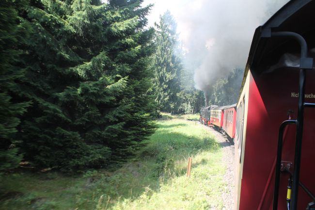 Am Freitag den 19. August hatte der Ortsrat von Schlewecke die Senioren, wie schon seit vielen Jahren, zu einer Halbtagesfahrt eingeladen. Das Reiseziel hieß Schierke. Um 11:45 Uhr fuhren wir mit einem Reisebus vom Busunternehmen Pülm mit 39 Personen von Schlewecke ab. Die Fahrtrute ging über Goslar nach Wernigerode, wo wir um 13:25 Uhr bei herrlichem Wetter mit der Harzer Schmalspurbahn weitergefahren sind zum Bahnhof in Schierke. Für unsere Reisegruppe war ein ganzer Wagen reserviert, so dass jeder einen Sitzplatz bekam. Pünktlich ging dann die Zugfahrt mit einer Dampflok los. Nachdem noch mehrere Haltestellen in Wernigerode passiert wurden, ging es dann stetig bergan in Richtung Brocken. An der dunklen Rauchwolke der Lok konnte man erkennen das der Heizer kräftig Kohlen nachlegen musste um auch genügend Dampf auf dem Kessel zu haben. Auf dem Bahnhof „Drei Annen“ musste die Lok auch noch einmal Wasser nachtanken. Dann ging es bis über 600 m/n höhe hinauf bevor wir nach einer Stunde Fahrzeit auf dem Bahnhof in Schierke ankamen. Hier waren in der Bahnhofsbaude für uns Plätz reserviert um Kaffee zu trinken und Kuchen zu essen. Danach stand die Zeit bis 17 Uhr zur freien Verfügung, der größte Teil der Teilnehmer verbrachte die Zeit auf dem Bahnhof am Kiosk mit einem Eis oder einem Getränk bei einer Unterhaltung.