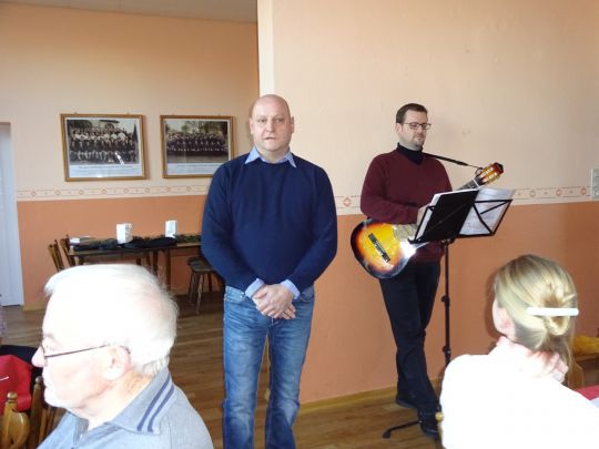 Begrüßung durch den Ortsbürgermeister, daneben Pastor Sindermann. |