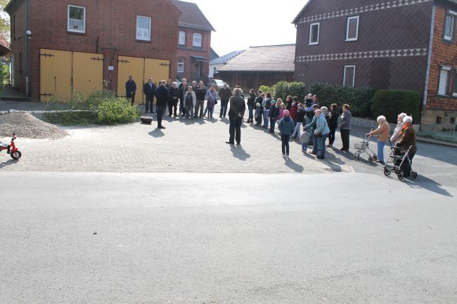 Zum Aufstellen des Maibaumes trafen sich die Einwohner von Schlewecke um 10 Uhr am Feuerwehrhaus. In diesem Jahr hatte der Ortsrat keine separate Einladung verteilt, da der Termin ja im Veranstaltungskalender bereits genannt wurde.