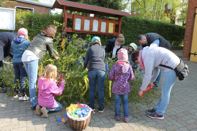 Schmücken des Maibaumes durch die Kinder. |