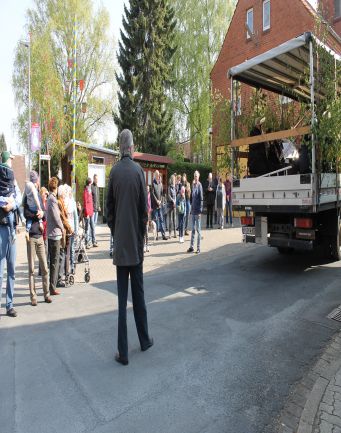 Befestigen des Maibaumes. |