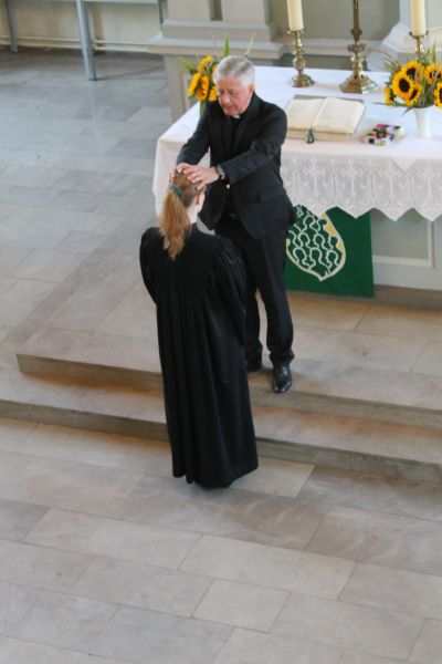 Der Probst bei der Segnung der Pfarrerin. |