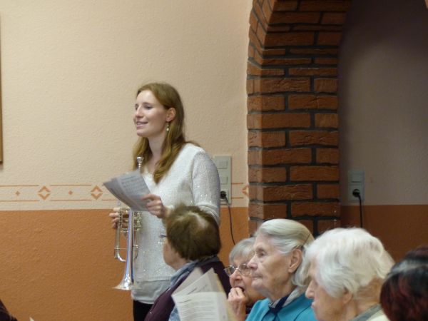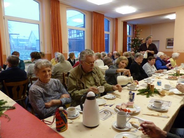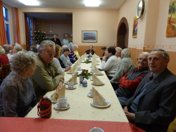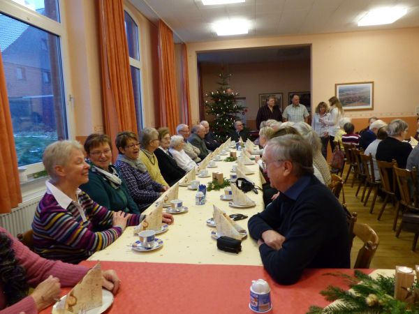Auch in diesem Jahr hatten am Sonntag den 10. Dezember um 15 Uhr der Kirchenvorstand und der neue Ortsrat zu einer Adventfeier die Schlewecker Senioren in den Dorfgemeinschaftsraum eingeladen. Die zukünftige Ortsbürgermeisterin, Regina Klingemann, begrüßte die Senioren, die Mitglieder des neuen Ortsrates, des Kirchenvorstandes und die Pfarrerin Frau Anne Lisa Hein. Sie zeigte sich erfreut über die sehr gute Resonanz auf diese Einladung. Auch aus dem Alten & Pflegeheim Timpe haben 9 Personen an der Feier teilgenommen. Nach der Begrüßung wurden dann 2 Adventslieder gesungen. Im Anschluss daran konnte sich jeder an dem reichhaltigen Kuchenbüffet bedienen, Kaffee und Tee stand in Kannen auf den Tischen. Der Kuchen wurde, wie immer, von den Mitgliedern des Kirchenvorstandes und des Ortsrates gestiftet. Hilfsbedürftige Personen wurden von den Helfern unterstützt. Nach dem Kaffee trinken haben wir weitere Weihnachtslieder gesungen, alle Lieder sind dabei von Frau Hein entweder auf der Trompete oder dem Keyboard begleitet worden. Zwischen den Liedern wurden auch zwei Adventgeschichten vorgelesen. Zum Schluss wurde dann noch gemeinsam ein Gebet gesprochen. Nun konnte sich jeder auf seinen Heimweg auf den schneebedeckten Straßen begeben, denn es in der Zwischenzeit kräftig geschneit.