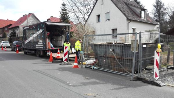 Nach kurzer Zeit stellten sie fest dass der Geruch aus einem Entwässerungsschacht kam, der Schacht dient dazu eingedrungenes Grundwasser aufzufangen und aus dem Keller zu pumpen. Mit dem Wasser war hier auch Öl eingedrungen. Die alarmierte Feuerwehr machte sich auf die Suche nach der Ursache. Nach Recherche wurde festgestellt dass es in den Vormittagsstunden in einem Nachbarhaus zu einer Leckage an einer Heizöltankanlage gekommen ist, hier waren mehrere hundert Liter Heizöl ausgelaufen. Der Besitzer hatte eine Spezialfirma mit der Beseitigung des Schadens beauftragt und auch die untere Wasserbehörde eingeschaltet doch es ist zu vermuten das hier auch Öl nach außerhalb des Hauses gelangen konnte und dies die Ursache für das eingedrungene Öl im Haus in der Langen Straße war.