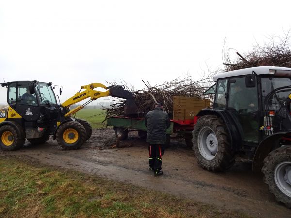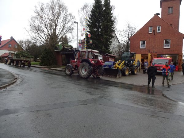 Auch in diesem Jahr wurde am Ostersamstag ein Osterfeuer zusammengefahren und am Abend abgebrannt. Das Osterfeuer wird von der Freiwilligen Feuerwehr schon seit vielen Jahren veranstaltet. Hierzu gibt es bereits im Vorfeld ein Rundschreiben im Ort mit der Bitte, wenn Baum – und Strauchschnitt abgeholt werden soll, diesen bei der Feuerwehr anzumelden. Treffen ist am Ostersamstag um 8 Uhr am Feuerwehrhaus, von hier wird dann das ganze koordiniert. So fahren mehrere Trecker mit Anhängern und immer ein paar Helfern durch den Ort um gegen eine Spende das angemeldete Strauchzeug aufzuladen und an seinen Bestimmungsort zu fahren. Der Baumschnitt kann aber auch bis Mittag selbst angeliefert werden. Bei dem Aufbau des Osterfeuers hat die Feuerwehr das Kommando. Die ständig ankommenden Trecker mit Anhängern werden, nachdem die Seitenwände der Anhänger geöffnet wurden, von einem Radlader vor Ort abgeschoben und das Strauchgut zu einem großen Haufen zusammen geschoben. Diese Arbeiten sind meist gegen Mittag abgeschlossen, danach treffen sich die Helfer am Feuerwehrhaus um sich bei gegrillter Bratwurst, Pommes und Getränken wieder zu stärken. In diesem Jahr hat es bei dem Zusammenfahren und dem Aufbau des Osterfeuers ständig geregnet, so waren alle Helfer kräftig durchnässt und durchgefroren. Der Zufahrtsweg zum Brennplatz im Petzenfeld war durch das ständige befahren sehr verdreckt und musste zum Schluss mit einem Frontlader gesäubert werden. Es ist wieder ein sehr großes Osterfeuer zusammen gekommen.