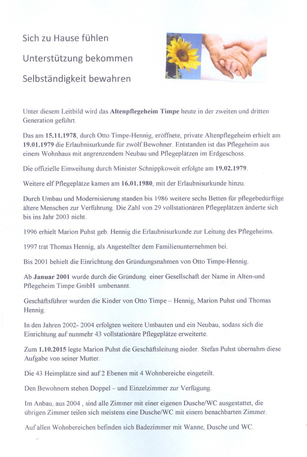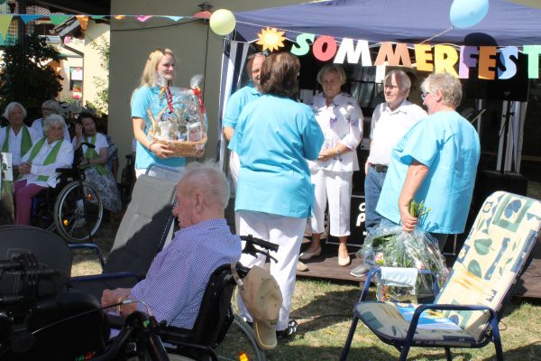 Am Samstag den 18. August um 14 Uhr fand im Alten- und Pflegeheim Timpe das schon traditionelle Sommerfest bei herrlichstem Wetter im Garten des Heimes statt. In diesem Jahr wurde auch das 40 jährige Bestehen des Hauses mit gefeiert. Wie der Geschäftsführer, Thomas Hennig, in seiner kurzen Begrüßung berichtete wurde das Heim am 15. November 1978 durch den damaligen Besitzer Otto Timpe-Hennig eröffnet. Es erhielt die Genehmigung für 12 Pflegeplätze. Im Februar 1979 wurde das Heim dann offiziell durch den damaligen niedersächsischen Sozialminister Hermann Schnippkoweit eingeweiht. Das Heim entstand in dem ehemaligen Wohnhaus von Otto Timpe-Hennig und wurde in den folgenden Jahren durch den Ankauf des Nachbarhauses und einem späteren Anbau erweitert. Weitere Auskünfte über die Geschichte des Heimes konnten in einer Informationsbroschüre nachgelesen werden.(Ein Auszug befindet sich am Ende des Berichtes). Im Anschluss an die Begrüßung wurden von dem Heimchor 2 selbst gedichtete Lieder vorgetragen. Die Pflegedienstleiterin, Vivian Hennig, ehrte danach den Gründer und seine Ehefrau mit einem Präsentkorb, den heutigen Geschäftsführer Thomas Hennig mit einem Geschenk und mehrere langjährige Mitarbeiter mit einem Blumenstraus. Die Ortsbürgerrmeisterin, Regina Klingemann, überreichte ein Geschenk vom Ortsrat.