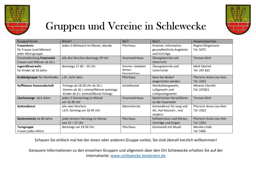 Gruppen und Vereine in Schlewecke