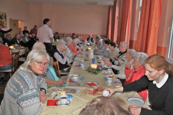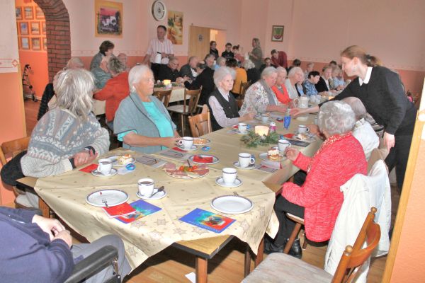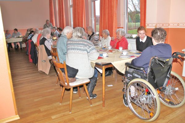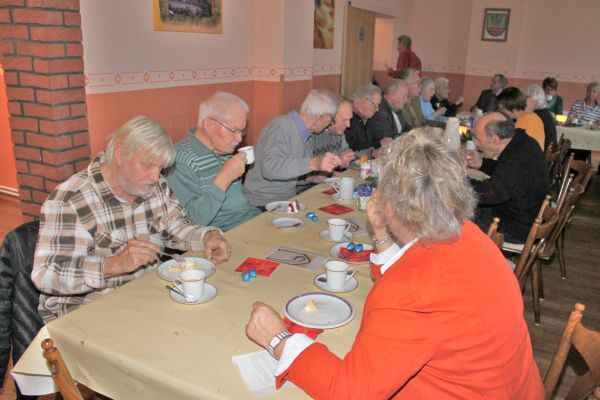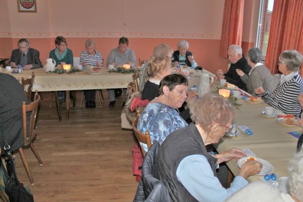 Die Ortsbürgermeisterin, Regina Klingemann, begrüßte die über 40 Teilnehmer, auch aus dem Alten & Pflegeheim Timpe haben 12 Personen teilgenommen. Nach dem Singen von 2 Adventsliedern konnten sich alle an dem sehr reichhaltigen Kuchenbuffet bedienen. Personen die Hilfe benötigten konnte der Kuchen auch am Tisch serviert werden. Kaffee und Tee stand in Kannen auf den Tischen. Der Kuchen wurde wieder von den Mitgliedern des Kirchenvorstandes und des Ortsrates gestiftet.