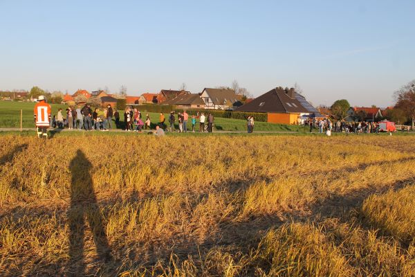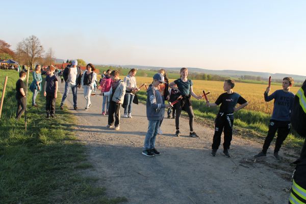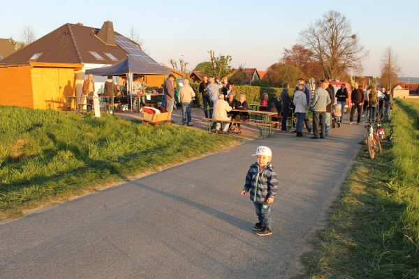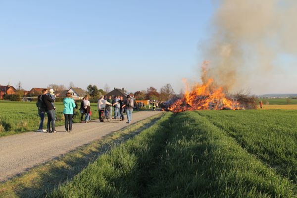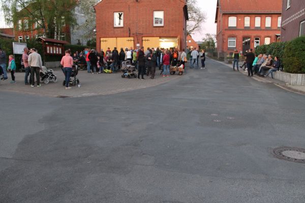Der Ortsrat hatte alle Kinder für 19 Uhr zu einem Fackelzug eingeladen. Treffpunkt war auch hier das Feuerwehrhaus, wo auch die Fackeln erworben werden konnten. Viele Kinder und deren Begleiter, nicht nur aus Schlewecke, beteiligten sich an diesem Zug zum Osterfeuer der von der Ortsbürgermeisterin begleitet wurde. Am Osterfeuerplatz angekommen zündeten Feuerwehrkameraden das Osterfeuer mit dem hierfür angelieferten alten Stroh an. Bei günstigem Wind und dem trockenem Strauchzeug breitete sich das Feuer schnell aus, der Qualm zog nicht in den Ort. Für das leibliche Wohl am Osterfeuer sorgte der Ortsrat für die vielen Zuschauer, mit Käsebroten und kalten Getränken in einem hierfür aufgebauten Pavillion. Wie immer bot die Feuerwehr am Feuerwehrhaus ebenfalls kalte Getränke, Bratwurst und Pommes an. Was auch von den Besuchern nach dem Osterfeuerbesuch gut angenommen wurde, so harrten manche bei angenehmen Temperaturen bis spät in die Nacht hier aus.