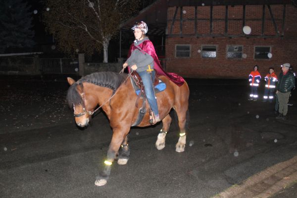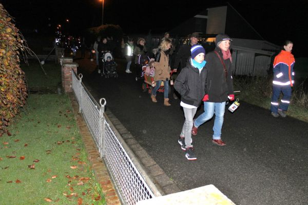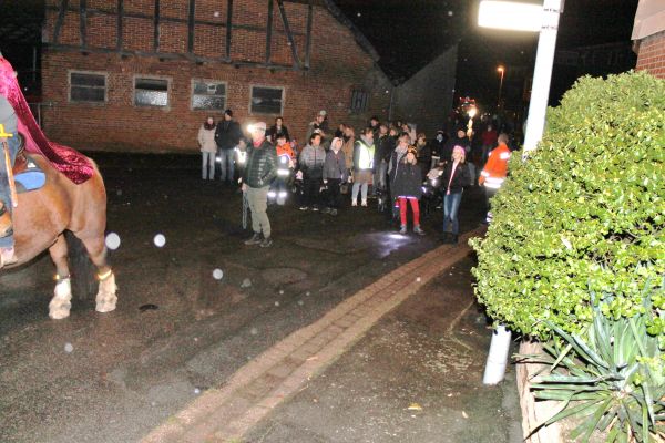 Für Freitag den 8. November hatte der Ortsrat um 17:45 Uhr wieder zu dem schon traditionellen Lampionumzug alle Schlewecker Kinder eingeladen. An alle Kinder wurde auch wieder je ein Gutschein für ein Getränk und für eine Bockwurst verteilt. Bei ihrer Begrüßung las die Ortsbürgermeisterin, Regina Klingemann, die Geschichte vom heiligen Sankt Martin vor. Danach teilte Sie mit, dass der Musikzug Bockenem kurzfristig seine musikalische Begleitung abgesagt hat. Dafür spielten Leticia Loß, Hanna Krebs und Talea Kiene mit ihren Querflöten mehrere Martinslieder und begleiteten so den Umzug. Zum ersten Mal wurde der Laternenumzug von dem Sankt Martin auf einem Pferd sitzend angeführt. Die Verkehrssicherung übernahm wieder die Kameraden der Freiwilligen Feuerwehr. So konnte der Umzug seinen üblichen Weg durch den Ort nehmen, der auch wieder ein Halt am Alten & Pflegeheim Timpe einlegte, bevor es dann weiter zum ehemaligen Schulhof ging. Hier hatten die Helfer bereits die Würstchen, heißen Kakao und andere Getränke vorbereitet, so dass sich die Kinder und deren Begleitung stärken – und aufwärmen konnten. Denn leider hat es den ganzen Umzug leicht geregnet und es wehte ein frischer Wind. Das ist wahrscheinlich der Grund für die geringere Teilnahme, denn im Vorjahr war die Veranstaltung besser besucht. Trotz des Wetters war es wieder eine gelungene Veranstaltung für alle Teilnehmer.