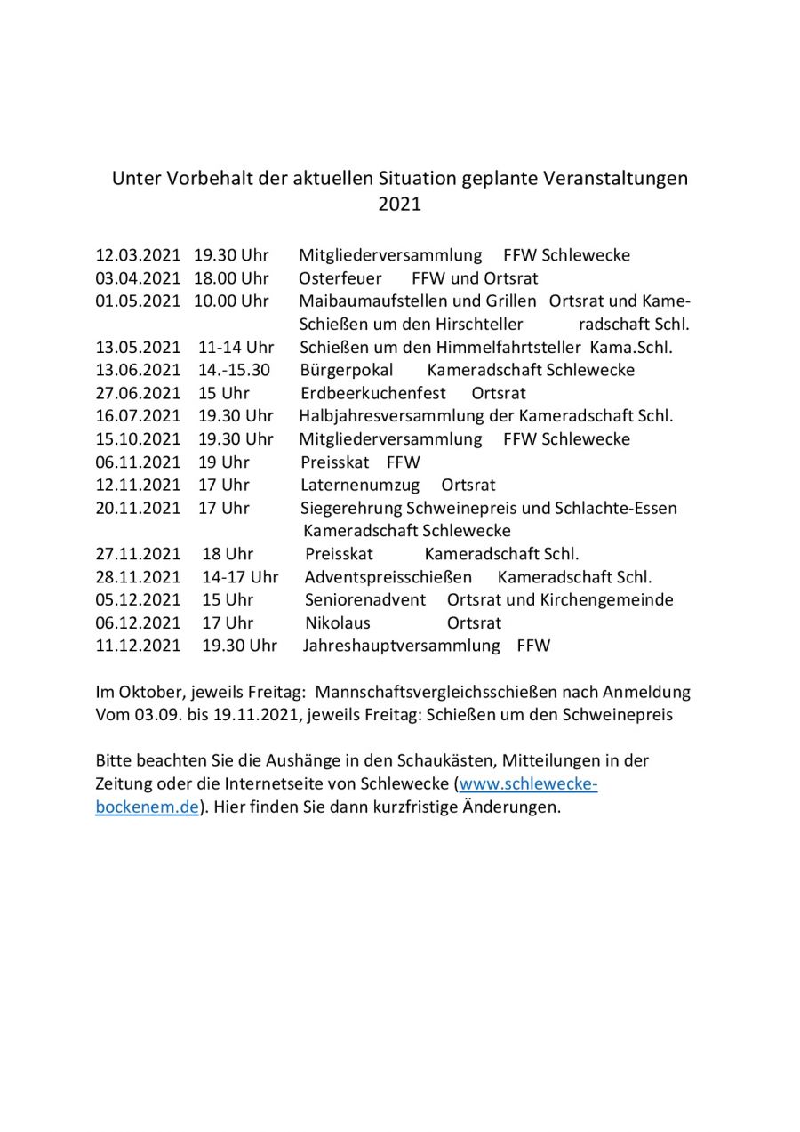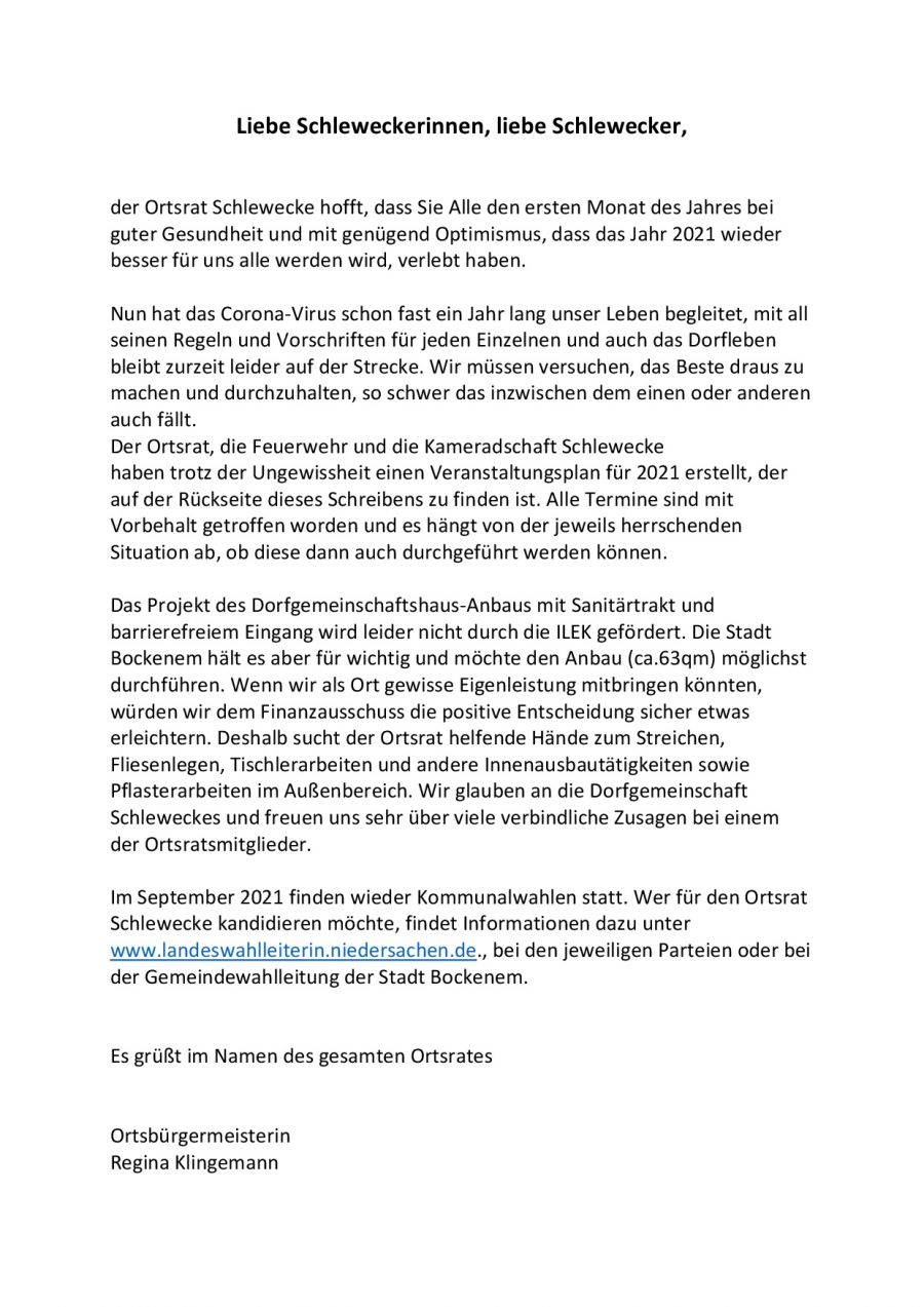 4. Gruß vom Ortsrat & Veranstaltungskalender 2021