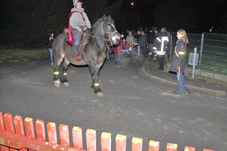 ![]() | Der Sankt Martin hoch zu Roß führt den Laternenumzug an.. |