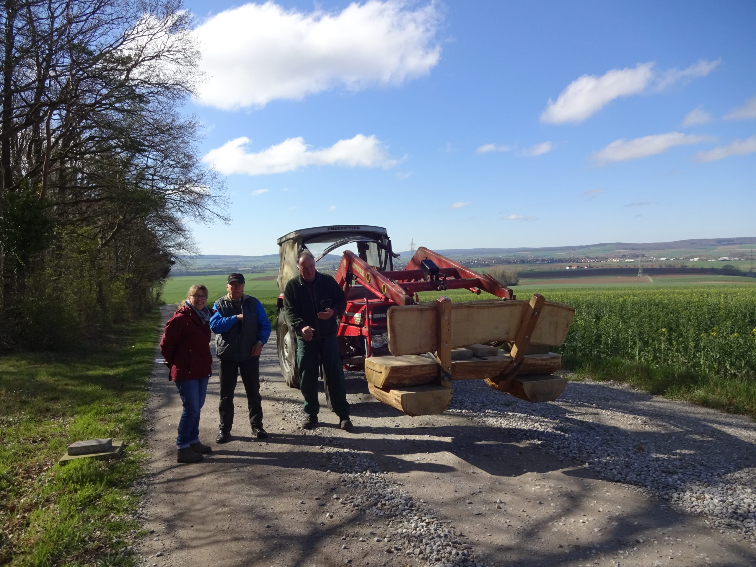 Am Waldrand an der „Ufer“, dies ist der Waldrand auf dem Berg östlich von dem Ort Schlewecke in der Verlängerung der Straße zur Zementfabrik. Hier wurde vor Jahren von einem damaligem Schlewecker eine Holzsitzbank wegen des sehr schönen Rundblickes über den Ambergau aufgestellt. Witterungsbedingt ist diese Bank seit 2 Jahren nicht mehr vorhanden. Schlewecker Bürger regten daher beim Ortsrat an, doch hier eine neue Bank aufzustellen. Der Ortsrat fasste im letzten Jahr auch einen positiven Beschluss hierzu. Von der Forstgenossenschaft Schlewecke wurde eine hierfür geeignete Eiche aus dem Wald gespendet. Das Ortsratsmitglied, Otto Ohms, hat diese dann zum Auftrennen in ein naheliegendes Sägewerk gefahren. Da in dem Sägewerk aber durch ein hohes Auftragsvolumen lange Wartezeiten bestehen, hat sich die Bearbeitung lange verzögert. Nach dem die Arbeiten im Sägewerk abgeschlossen waren, konnten die weiteren Aufbauarbeiten für die Bank beginnen. Dabei entstand eine sehr schöne und stabile Bank, die nun am Ostersamstag an dem alten Platz aufgestellt wurde. Jetzt können hier die Wanderer wieder eine Pause einlegen und den herrlichen Blick über fast den gesamten Ambergau genießen.