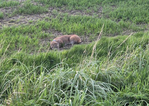 Ein Bürger aus Schlewecke hat bei einer Fahrradfahrt durch die Schlewecker Felder Südöstlich von Schlewecke (am Kramhagen) einen ausgewachsenen Luchs gesehen. Das Tier sonnte sich unweit vom Weg entfernt am Nachmittag auf einem Feld. Er hat sich auch nicht gestört, als der Fahrradfahrer abstieg und Bilder und ein Video gemacht hat.