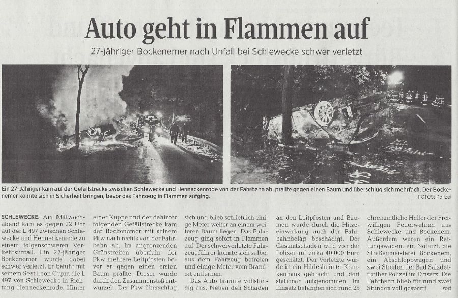 Nächster: Verkehrsunfall bei Schlewecke