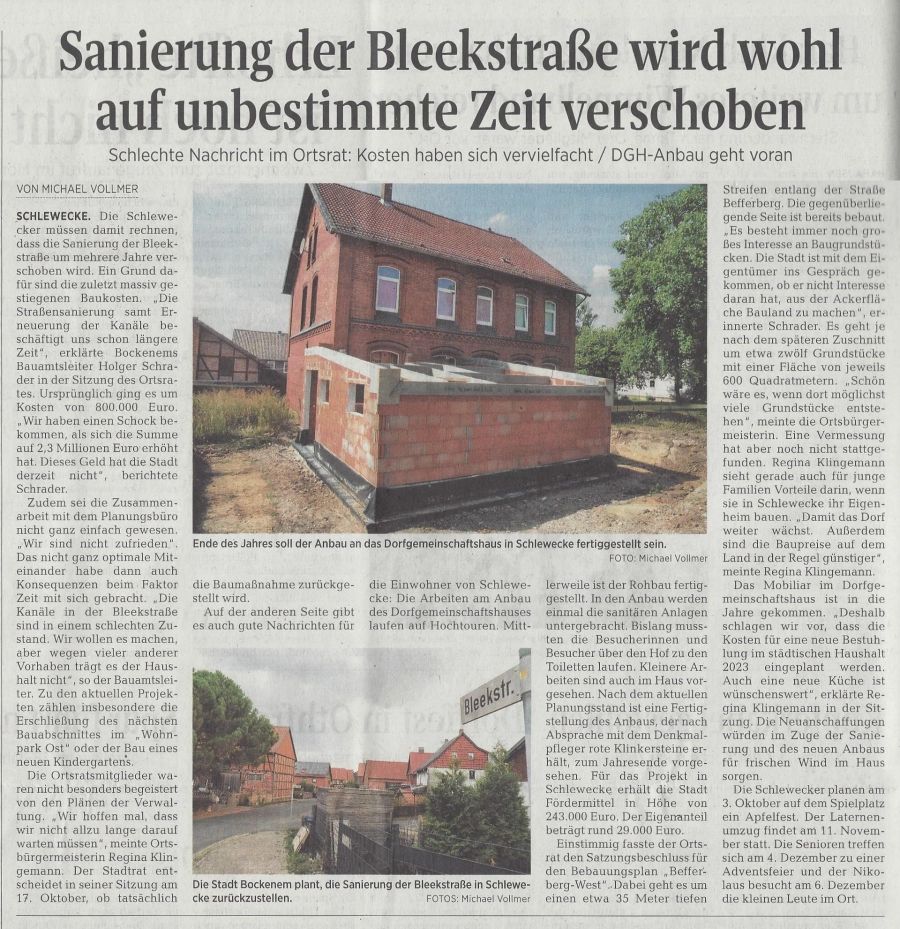 4. Bericht zur Ortsratssitzung v. 25.08.22.