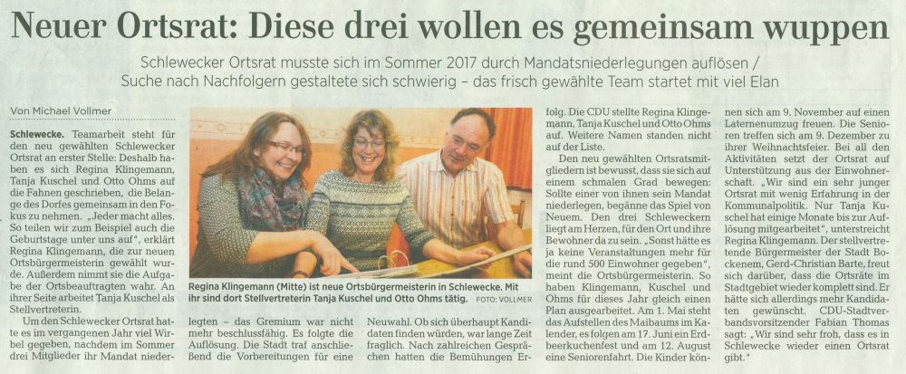 4. Ortsratssitzung mit Wahl der Ortsbürgermeisterin
