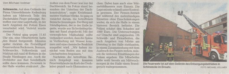 4. Brand bei Fa. Umweltdienste Kedenburg